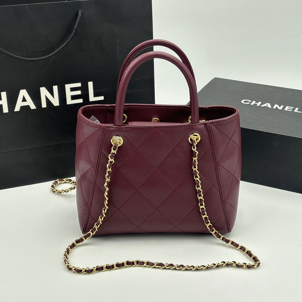 Chanel burgundy small shopping bag AS6025 B23125 U6550. Grained calfskin & gold-tone metal. Dark burgundy. 19 x 25 x 12cm